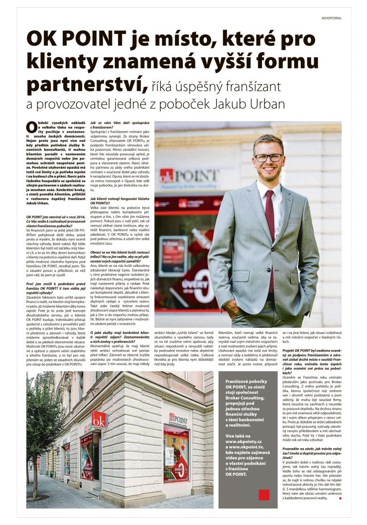 Spolupráci s franšízorem vnímám jako vzájemnou synergii. Ze strany Broker Consulting, zřizovatele OK Pointu, je podpoře franšízantům věnována velká pozornost. Mimo zavádění inovací, které Vás neustále posouvají vpřed, je centrálou garantovaná celková podpora a všestranné zázemí. Navíc silného partnera za zády svého podnikání vnímám v současné době jako výhodu k nezaplacení. Opora, které se mi dostává mimo metropoli v Opavě, kde sídlí moje pobočka, je jen třešnička na dortu.